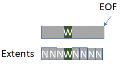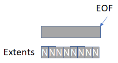 파일이 처음 작성될 때 EOF= 0이고 포함 범위는 기록되지 않도록 (N)으로 설정된다. 쓰지 않은 범위의 읽기는 Linux에서 항상 0을 반환한다. Linux는I/O 장치를 사용하지 않지만 단순히 쓰지 않는 범위로 추적된 공간에 대해 리턴 버퍼를 0으로 채운다.